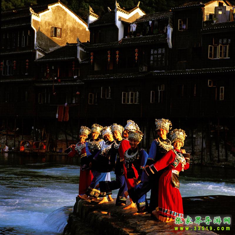 原汁原味的楚巫文化、韻味獨特的湘西鳳凰土話、別具一格的苗族服飾、苦辣咸酸的飲食習慣,還有原始戲劇活化石儺堂戲、地方風味十足的陽戲、散發(fā)著泥土清香的文茶燈,以及玻璃吹畫、蠟染、紙扎、苗族銀飾等格調(diào)清新高古的民間工藝,構(gòu)成湘西鳳凰獨具特點的民族民俗風情。
