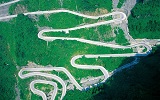 【通天大道】:被稱為通天大道的盤山公路共計99彎,似玉帶環(huán)繞,彎彎緊連,層層疊起,依山籍壁,直沖云霄,“天下第一公路奇觀”橫空出世,從索道上觀看公路,有如蜘蛛網一般密集的公路,垂直高差達千米左右。