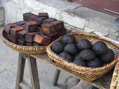 名稱: 血豆腐 介紹: 血豆腐,就是將豆腐和豬血、豬肉及花椒、辣椒等佐料拌成泥狀,捋成卵形,以竹篩置火炕上,煙熏烤成臘黃,吃起來耐嚼味香,是土家特色菜,當(dāng)?shù)厝顺R云湎戮啤?在張家界的飯館里很難吃到正宗的土家特色菜,可以去做土味的特色餐館去解解饞。但是最正宗還是鄉(xiāng)下人家家里自己熏的,那才叫一個(gè)好吃?。?!