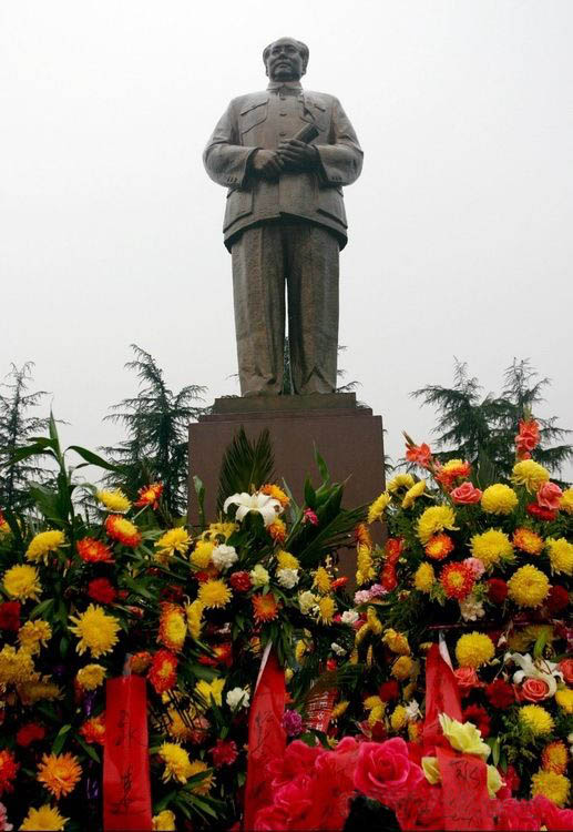 毛澤東銅像重3.7噸,像高6米,基座高4.1米,通高10.1米,象征著“10.1”國慶,更象征著毛澤東是新中國的締造者。像面朝東南方,身著中山裝,左胸前掛著“主席”證,手執(zhí)文稿,目光炯炯,面帶微笑,正視前方,巍然挺立,成功地再現(xiàn)了人民領(lǐng)袖毛澤東出席開國大典時的風(fēng)采。銅像褐紅色大理石基座正面,鐫刻著中共中央總書記、國家主席、中央軍委主席江澤民1992年題寫的“毛澤東同志”五個貼金大字。