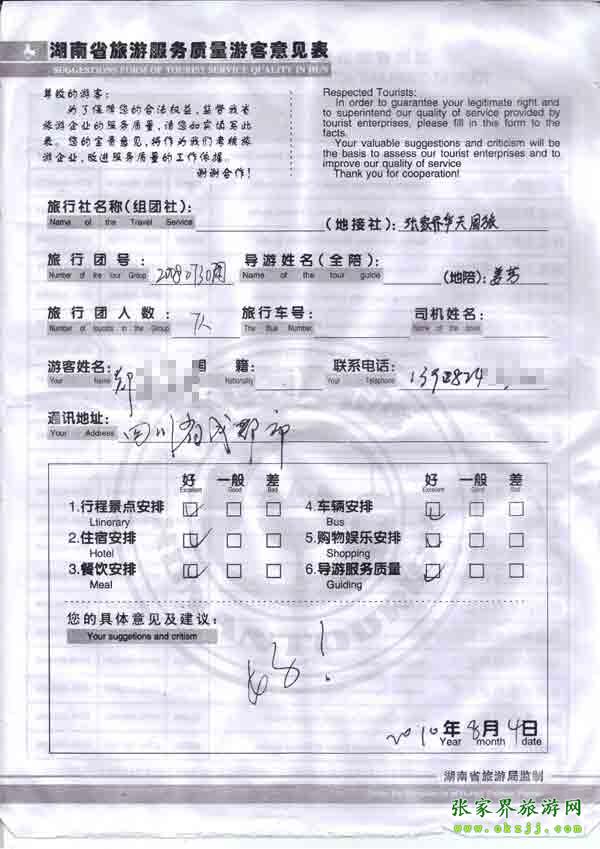 - 游客夏先生為表揚(yáng)導(dǎo)游李姣姣寫來表揚(yáng)信致我張家界... [14811]