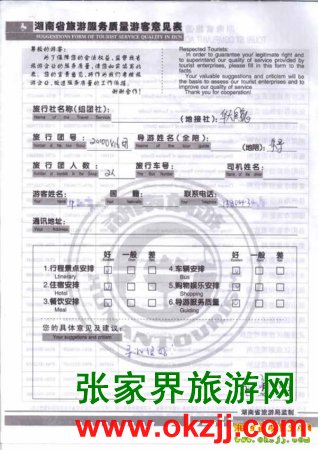 - 游客夏先生為表?yè)P(yáng)導(dǎo)游李姣姣寫(xiě)來(lái)表?yè)P(yáng)信致我張家界... [14811]
