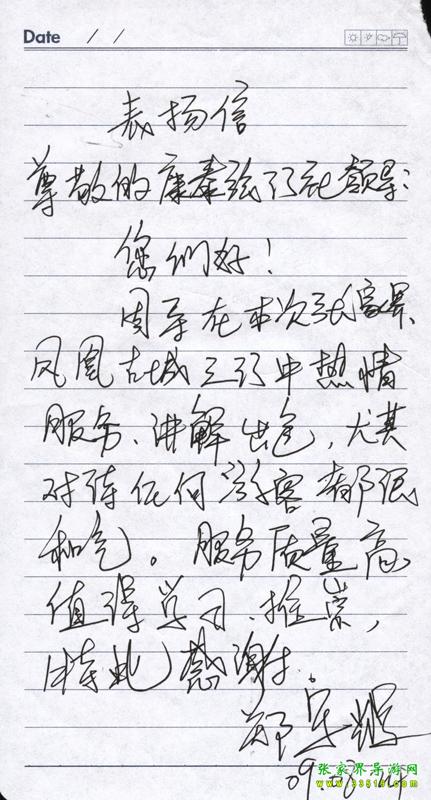 - 游客夏先生為表揚導(dǎo)游李姣姣寫來表揚信致我張家界... [14811]