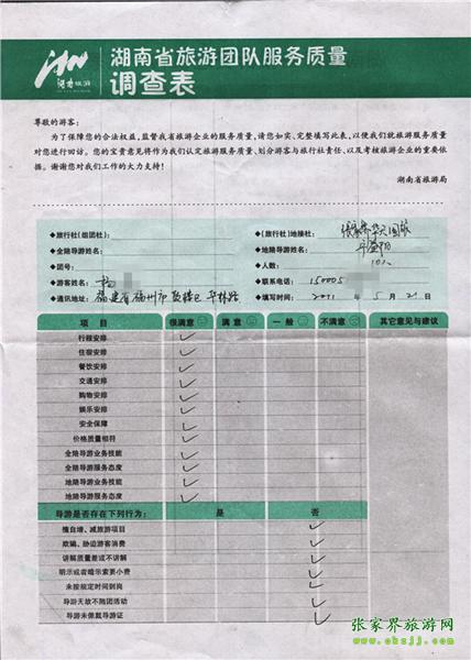 2011年5月21號(hào)楊小姐一行10人旅游質(zhì)量反饋
