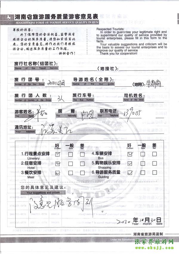 - 游客夏先生為表揚導游李姣姣寫來表揚信致我張家界... [14811]