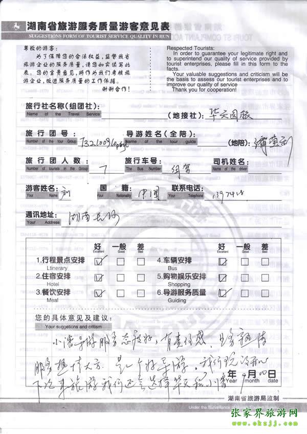 - 游客夏先生為表?yè)P(yáng)導(dǎo)游李姣姣寫來表?yè)P(yáng)信致我張家界... [14811]