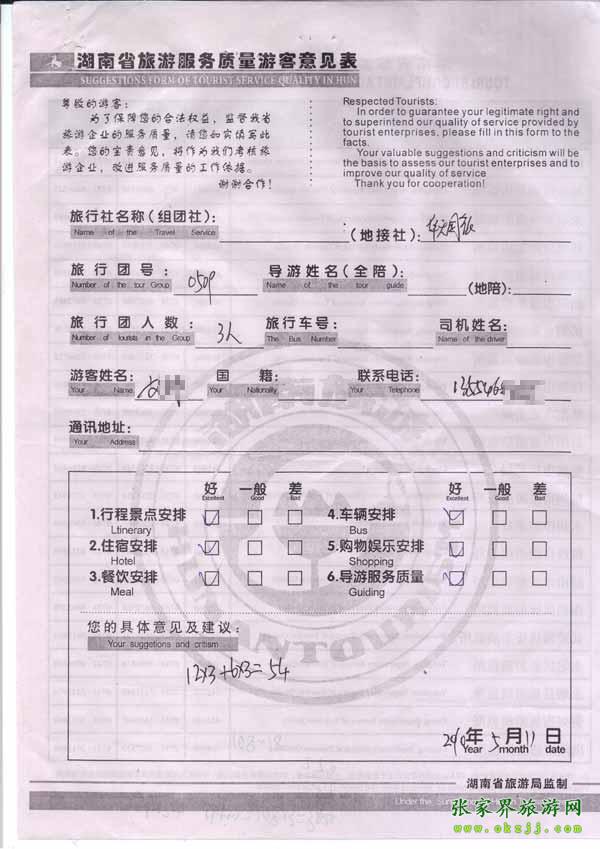 - 游客夏先生為表揚導游李姣姣寫來表揚信致我張家界... [14811]