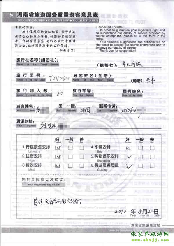 - 游客夏先生為表揚導游李姣姣寫來表揚信致我張家界... [14811]