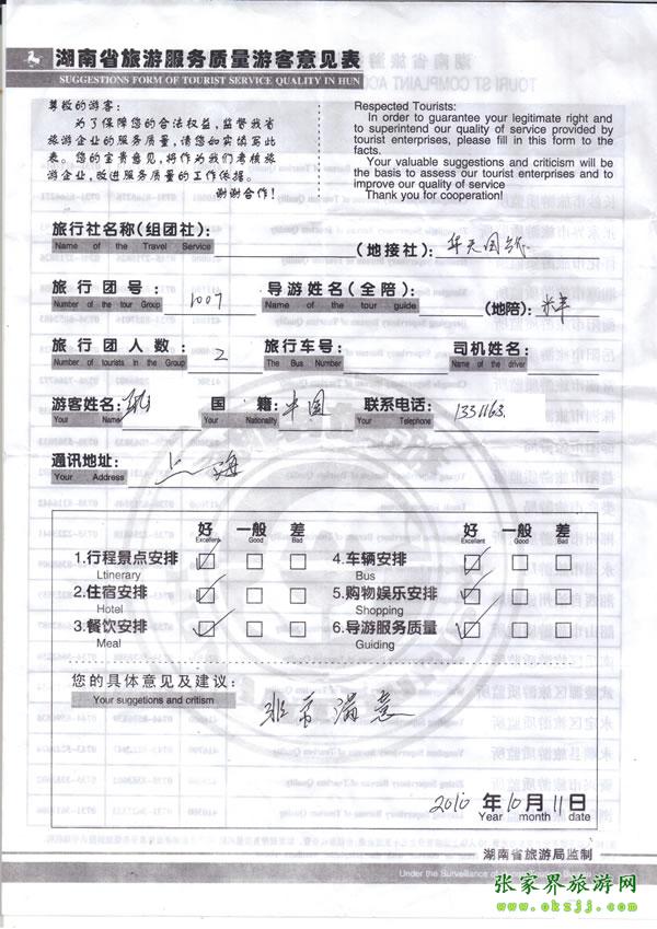 - 游客夏先生為表揚(yáng)導(dǎo)游李姣姣寫來表揚(yáng)信致我張家界... [14811]