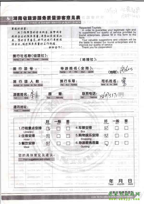 - 游客夏先生為表揚導(dǎo)游李姣姣寫來表揚信致我張家界... [14811]