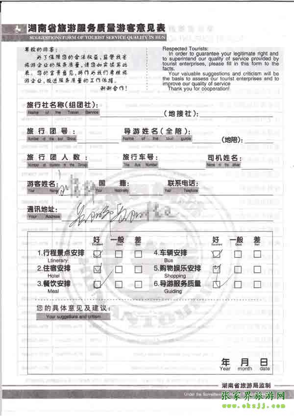 2010年8月6日岳陽劉小姐旅游質(zhì)量反饋