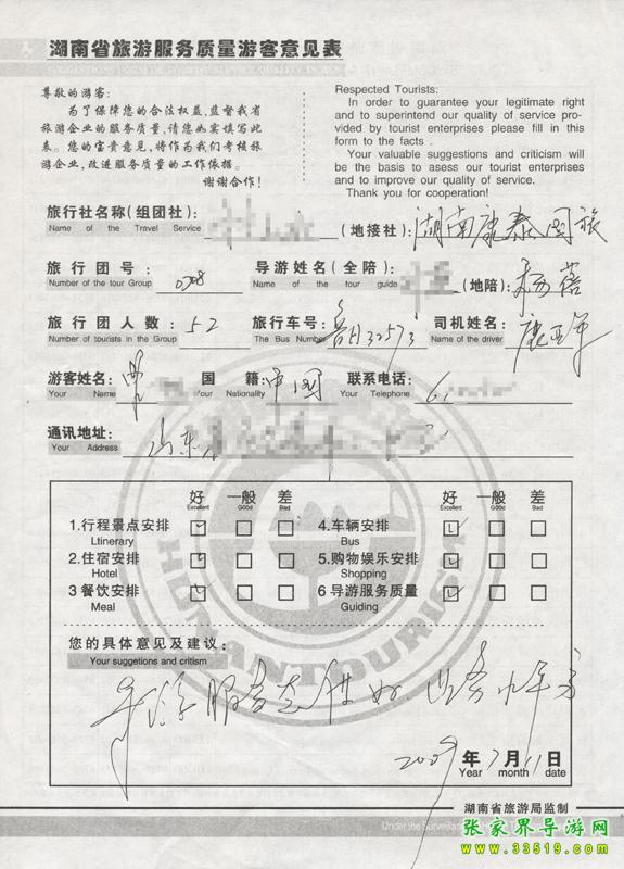- 游客夏先生為表揚導游李姣姣寫來表揚信致我張家界... [14811]