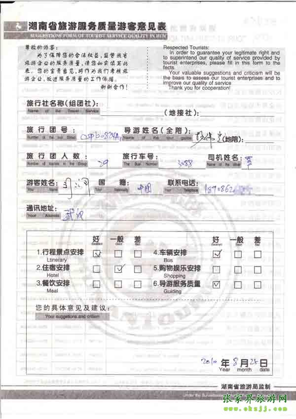 2010年8月25日周先生旅游質量反饋
